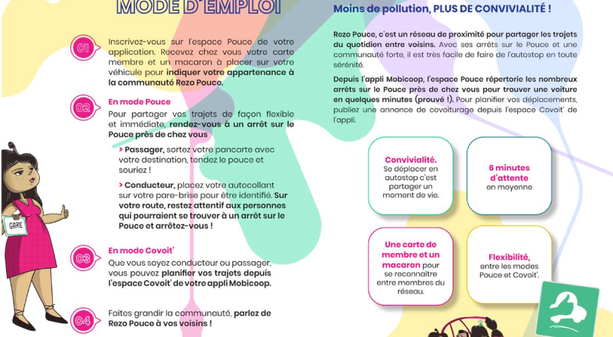 REZO POUCE ce sont des arrêts pour faire du stop et une appli et un site internet pour covoiturer.